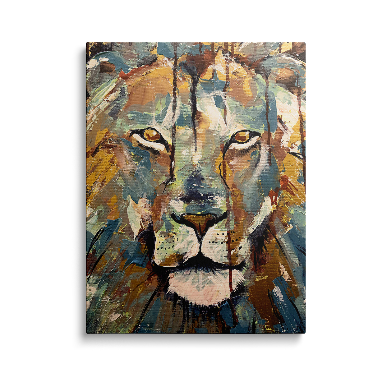 Acest tablou canavas cu reprezentarea unui leu, realizat cu măiestrie, captează esența regalității și puterii acestui animal emblematic. Fundalul de culoare maro adaugă o notă de căldură și profunzime, evidențiind detaliile fine ale blănii leului, care strălucește în lumina subtilă a compoziției. Fiecare tușă de pensulă este meticulos aplicată, creând o textură bogată care invită privitorul să se apropie și să admire măiestria artistului. Această lucrare nu este doar o simplă reprezentare a unui leu, ci o celebrare a forței și a frumuseții naturale, fiind perfectă pentru a adăuga un accent sofisticat oricărui interior. Ideală pentru iubitorii de artă și natură, această pictură va deveni cu siguranță un punct de atracție în orice spațiu.