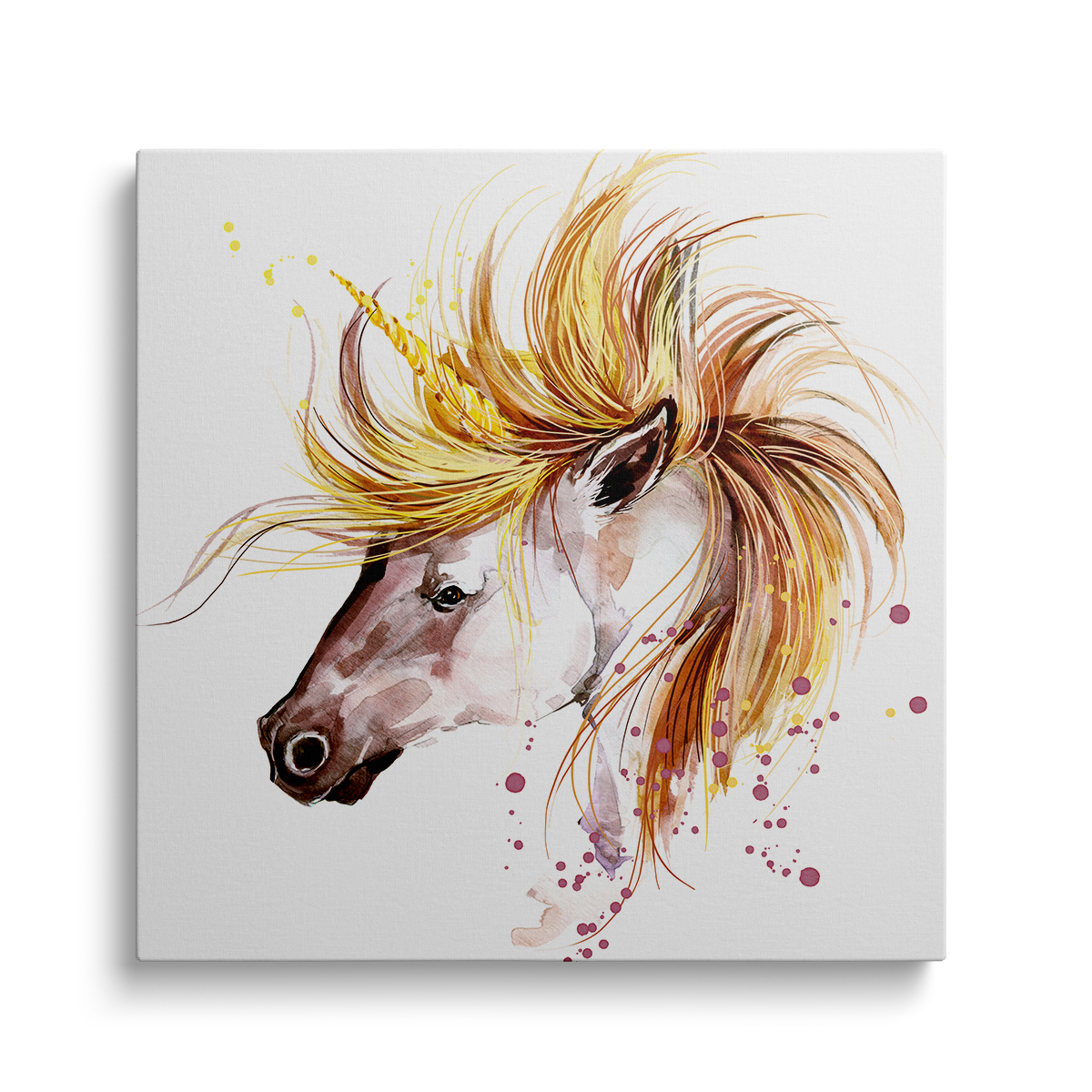 Acest tablou canvas surprinde frumusețea și grația unui unicorn cu o coamă lungă, ondulată, care pare să strălucească în nuanțe delicate de roz, albastru și violet. Detaliile fine ale coamei sunt realizate cu o tehnică de acuarelă care conferă o senzație de mișcare și fluiditate, evocând o atmosferă de vis și magie. Fundalul este o combinație subtilă de culori pastelate, care completează perfect figura mitică, aducând un sentiment de serenitate și fantezie. Această lucrare de artă nu este doar o simplă pictură, ci o invitație de a pătrunde într-o lume plină de imaginație, ideală pentru a fi expusă în camerele copiilor sau în orice spațiu care necesită o notă de magie și inspirație.