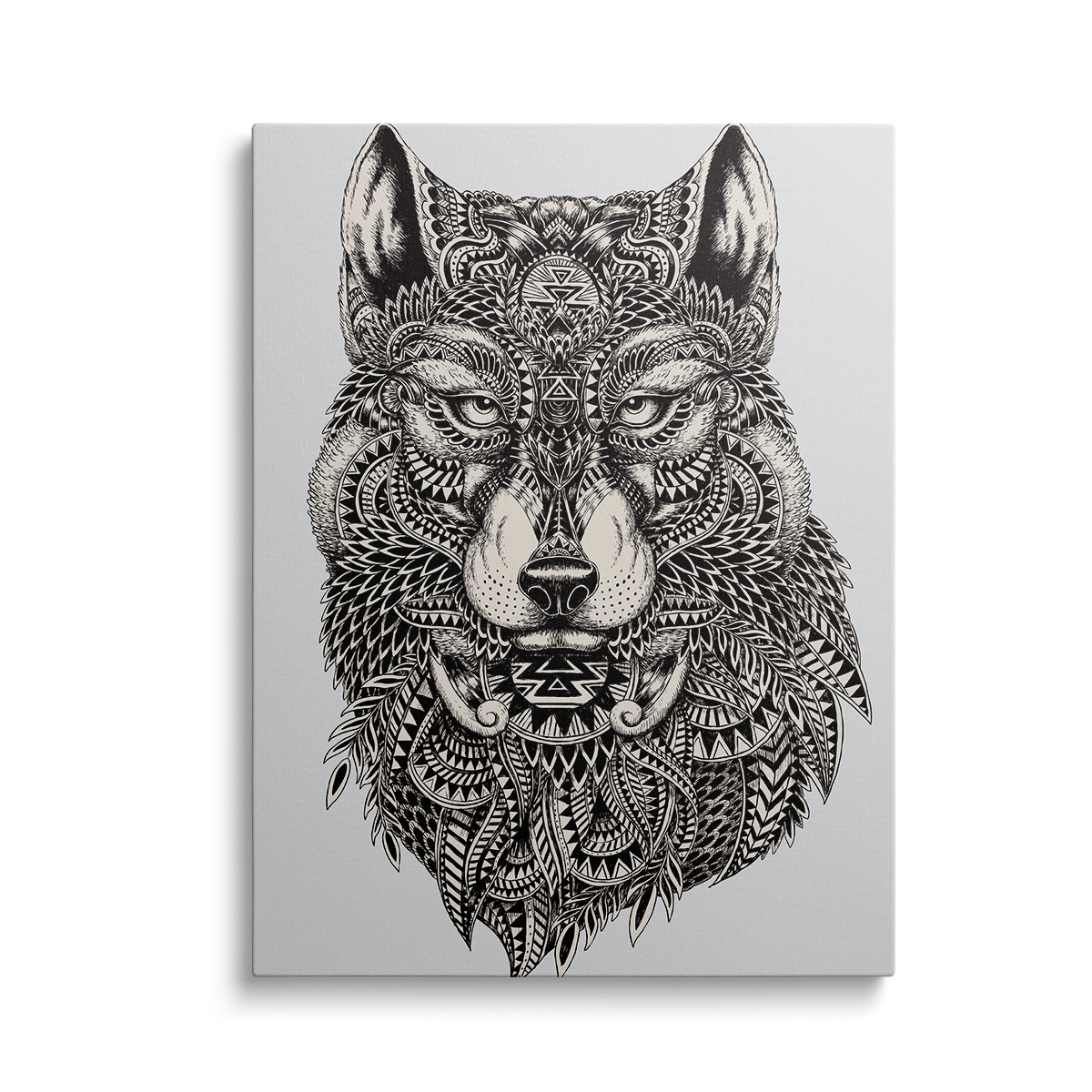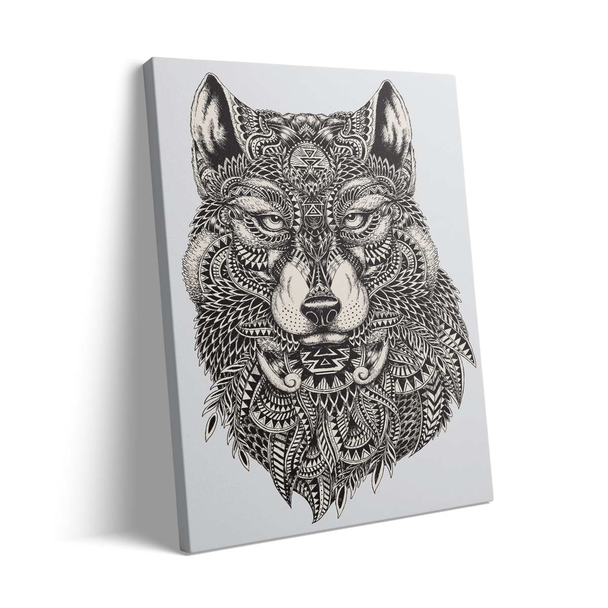 Acest tablou canvas prezintă un cap de lup, decorat cu motive tribale intricate, evidențiate pe un fundal alb pur. Designul artistic al capului de lup reflectă o combinație armonioasă între forța și eleganța acestui animal simbolic, în timp ce detaliile tribale adaugă o notă de mister și autenticitate. Culorile și formele geometrice utilizate în motivele tribale sunt menite să sublinieze caracterul sălbatic și spiritul liber al lupului, făcând din această imagine o alegere ideală pentru cei care apreciază arta inspirată de natură și cultura indigenă. Această lucrare poate fi utilizată atât în decorarea interioarelor moderne, cât și în cadrul unor proiecte artistice, oferind un accent vizual puternic și o poveste captivantă.