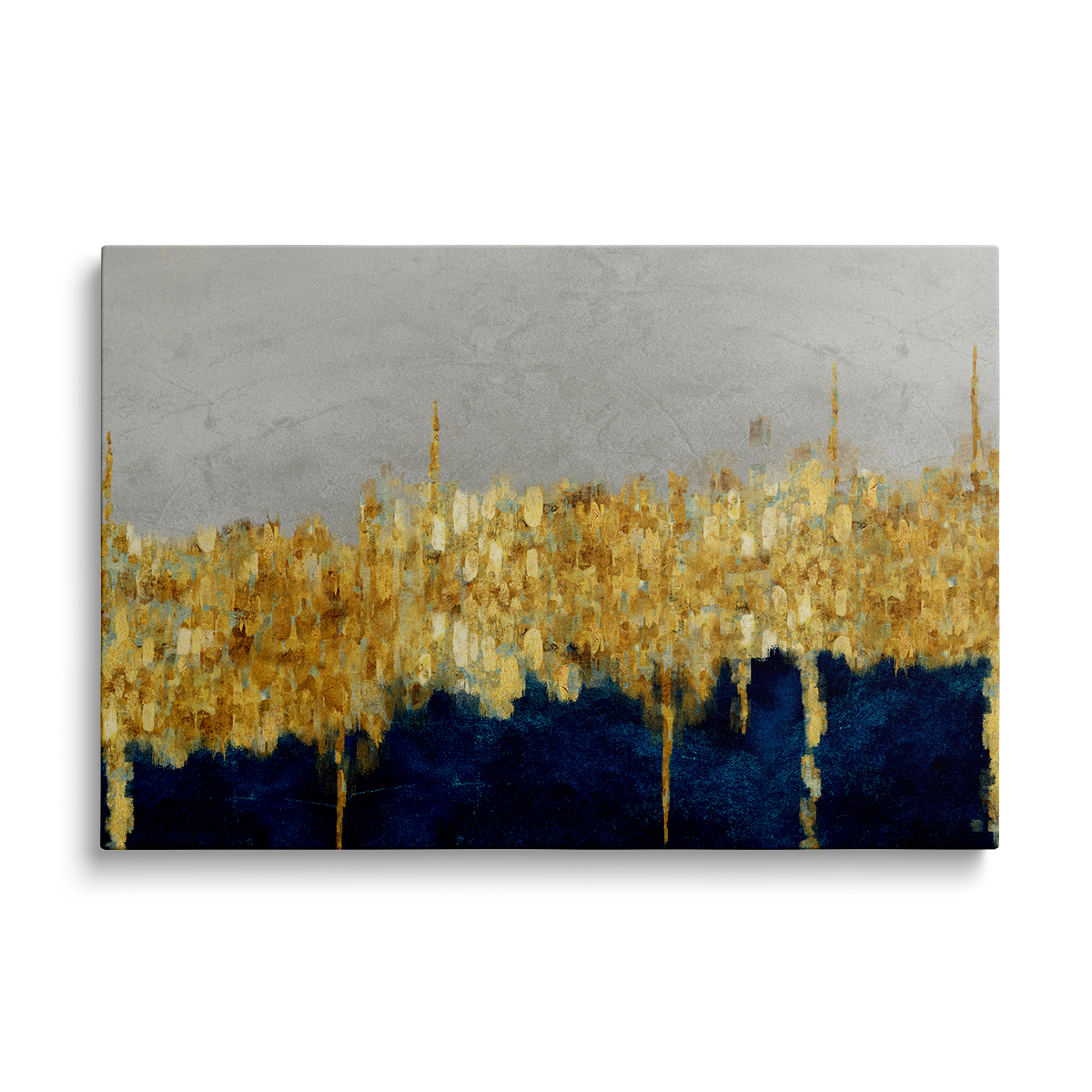 Acest tablou canvas abstract, îmbină nuanțe de aur și albastru pentru a crea o compoziție vizuală captivantă și sofisticată. Fiecare detaliu al picturii reflectă o armonie perfectă între strălucirea metalică a aurului și profunzimea liniștitoare a albastrului, oferind spectatorului o experiență estetică unică. Textura bogată a pânzei, combinată cu tehnica de aplicare a vopselei, conferă lucrării o dimensiune tridimensională, invitând privitorul să exploreze nu doar culorile, ci și emoțiile pe care acestea le evocă. Această pictură nu este doar un element decorativ, ci și o declarație de stil, perfectă pentru a adăuga un accent de eleganță și rafinament oricărui spațiu, fie că este vorba despre un living modern, un birou sofisticat sau o galerie de artă contemporană.