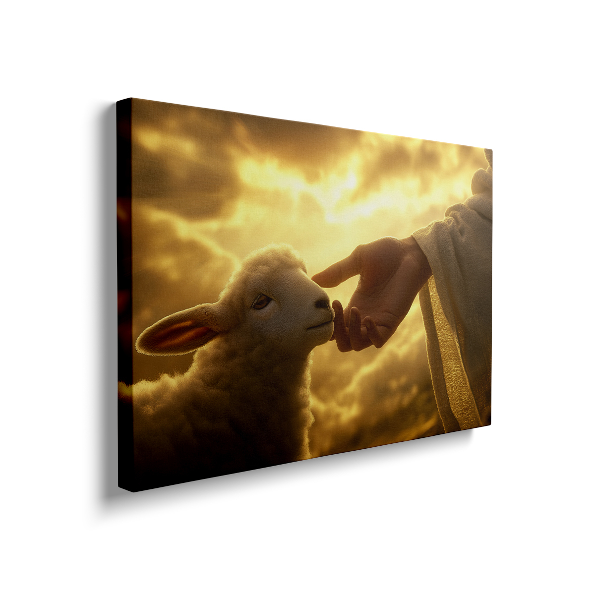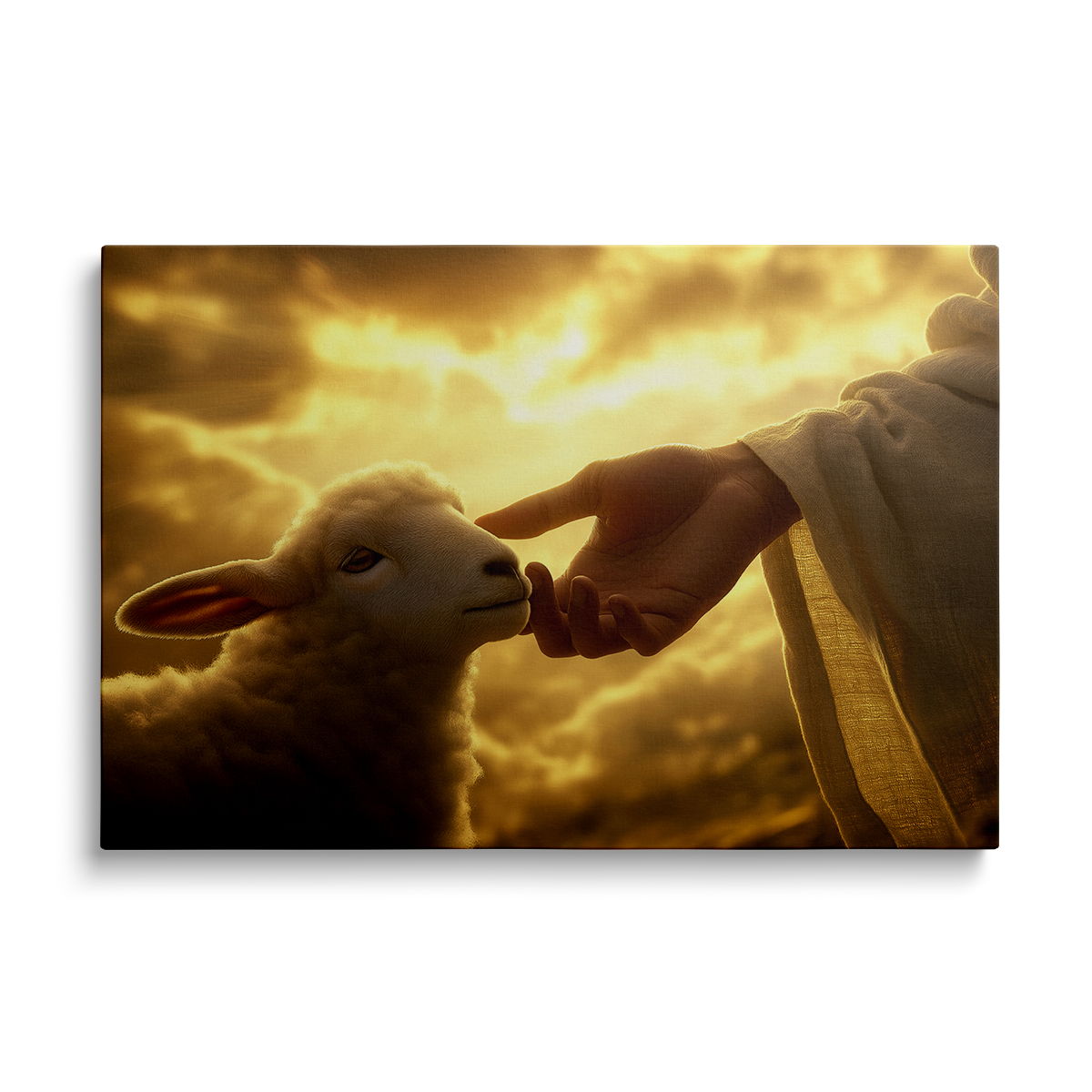 Tabloul canvas, intitulat „Iisus și Mielul”, reprezintă o interpretare profundă și emoționantă a legăturii sacre dintre figura centrală a creștinismului și simbolul purității și al nevinovăției, mielul. Imaginea îl surprinde pe Iisus într-o postură blândă și protectoare, ținând mielul în brațe, evocând un sentiment de compasiune și iubire divină. Culorile calde și detaliile fine ale lucrării adaugă o notă de eleganță și spiritualitate, făcând din acest tablou o alegere ideală pentru decorarea oricărei încăperi, fie că este vorba despre un spațiu de rugăciune, un birou sau un living. Această piesă nu doar că îmbogățește estetic un perete, dar servește și ca un memento constant al valorilor de iubire și protecție, inspirându-i pe cei care o privesc să reflecteze asupra credinței și a legăturii lor cu divinitatea.