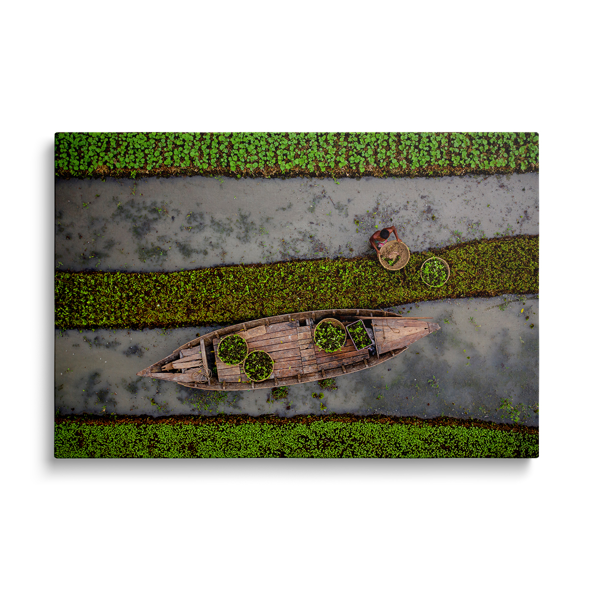 Tabloul canvas surprinde o barcă elegantă plutind liniștit pe un râu cristalin, înconjurată de o vegetație luxuriantă de iarbă și plante. Râul, cu ape limpezi care reflectă razele soarelui, oferă un cadru idilic pentru această scenă de relaxare și armonie cu natura. Barca, cu un design simplu dar rafinat, pare să invite privitorul la o plimbare liniștită pe apă, în timp ce vegetația din jur adaugă o notă de prospețime și vitalitate. Iarba verde și plantele abundente contribuie la atmosfera de serenitate, creând un peisaj perfect pentru cei care caută evadarea din agitația cotidiană. Această imagine evocatoare este ideală pentru a aduce un strop de natură și liniște în orice spațiu, fiind potrivită atât pentru decorarea interioarelor, cât și pentru utilizarea în materiale de promovare a turismului ecologic.