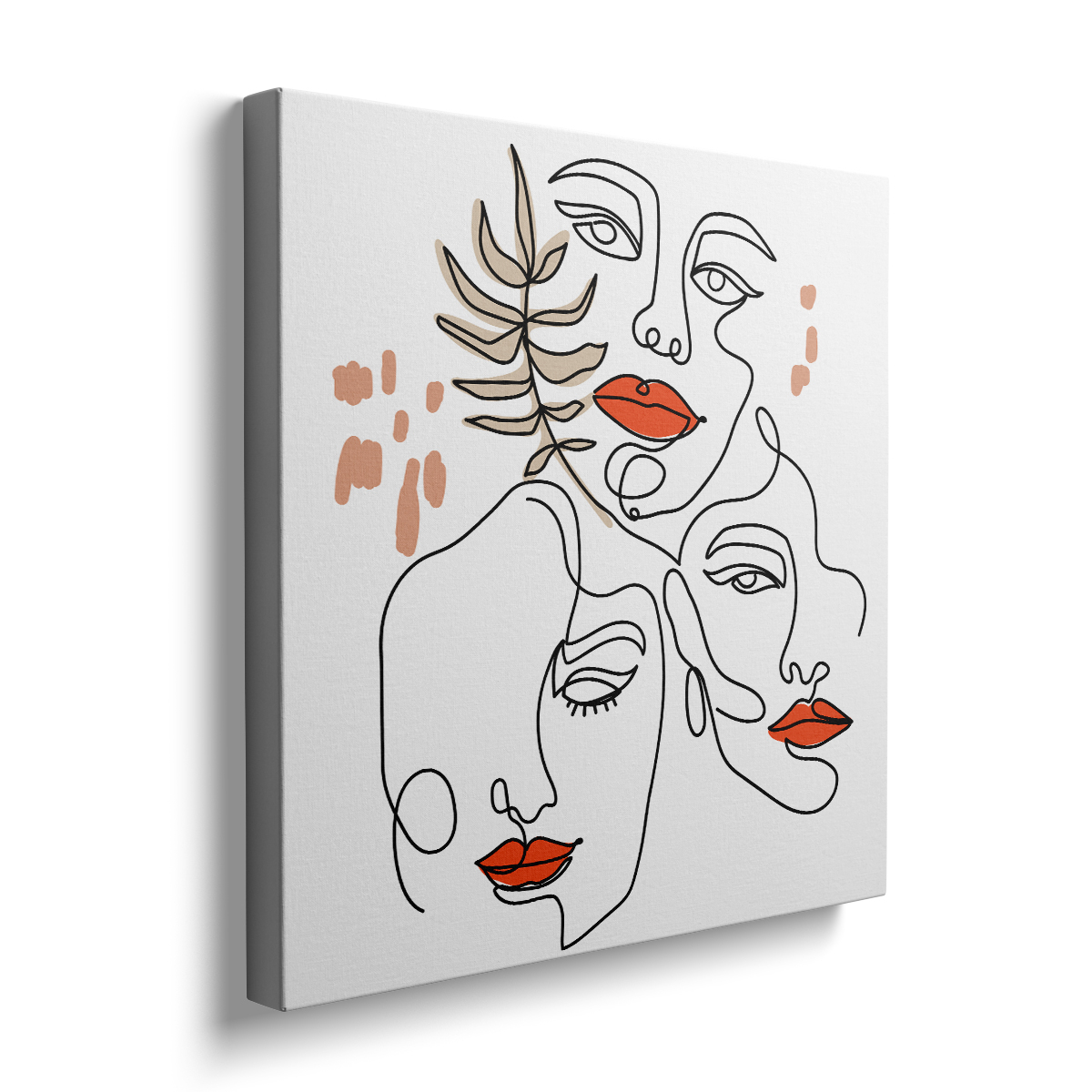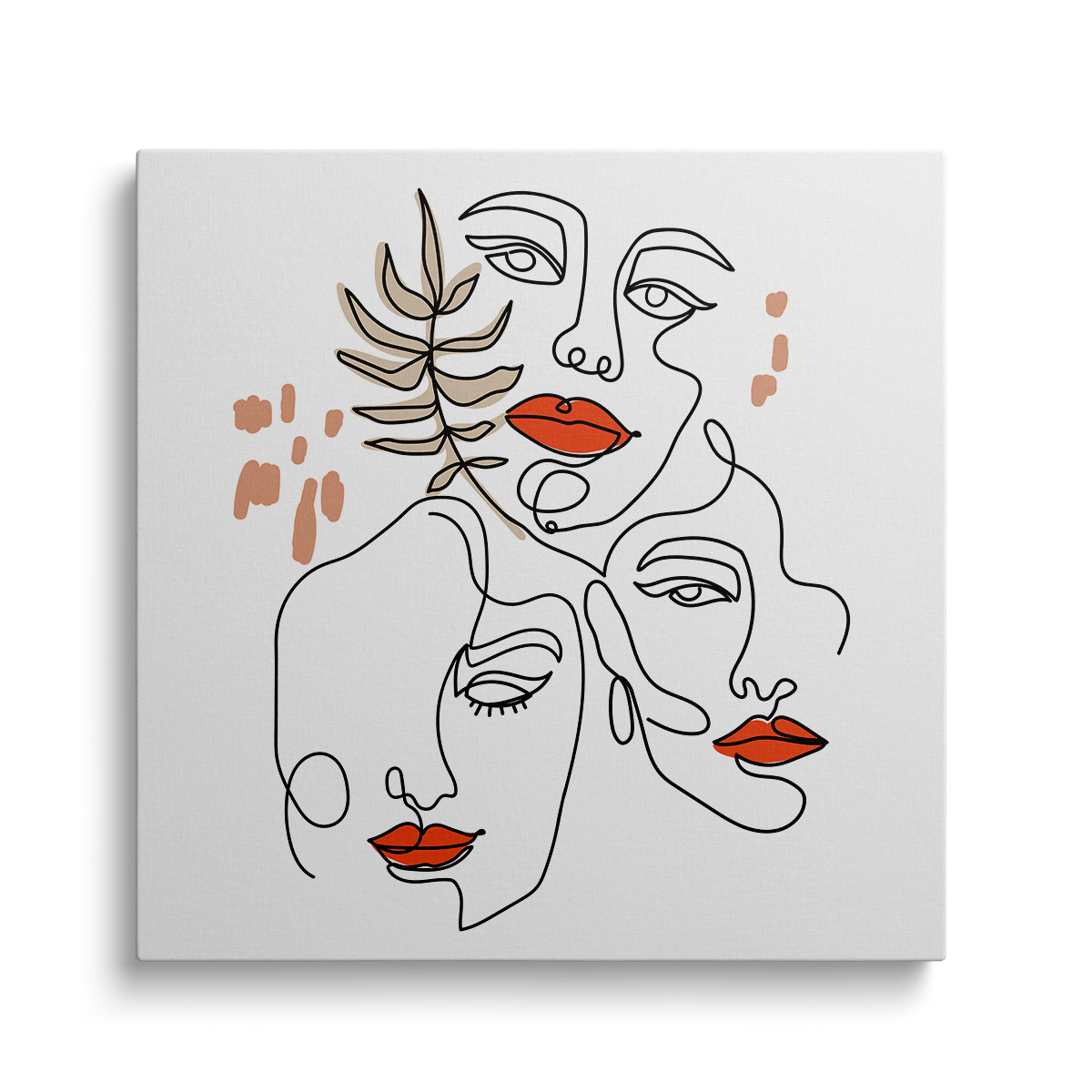 Acest tablou canvas prezintă trei fețe feminine, fiecare emanând o expresie unică și profundă, înconjurate de un decor natural de frunze delicate. Fiecare chip este realizat cu o atenție deosebită la detalii, evidențiind trăsăturile distincte ale fiecărei femei, care par să spună o poveste proprie. Paleta de culori folosită este vibrantă, cu nuanțe de verde și tonuri calde, care creează un contrast plăcut și atrăgător. Frunzele, ce se împletesc armonios cu fețele, sugerează o conexiune profundă între natura feminină și mediul înconjurător, invitând privitorul să reflecteze asupra relației dintre oameni și natură. Această lucrare de artă nu este doar o simplă reprezentare vizuală, ci și o invitație la introspecție și apreciere a frumuseții feminine în toate formele sale.