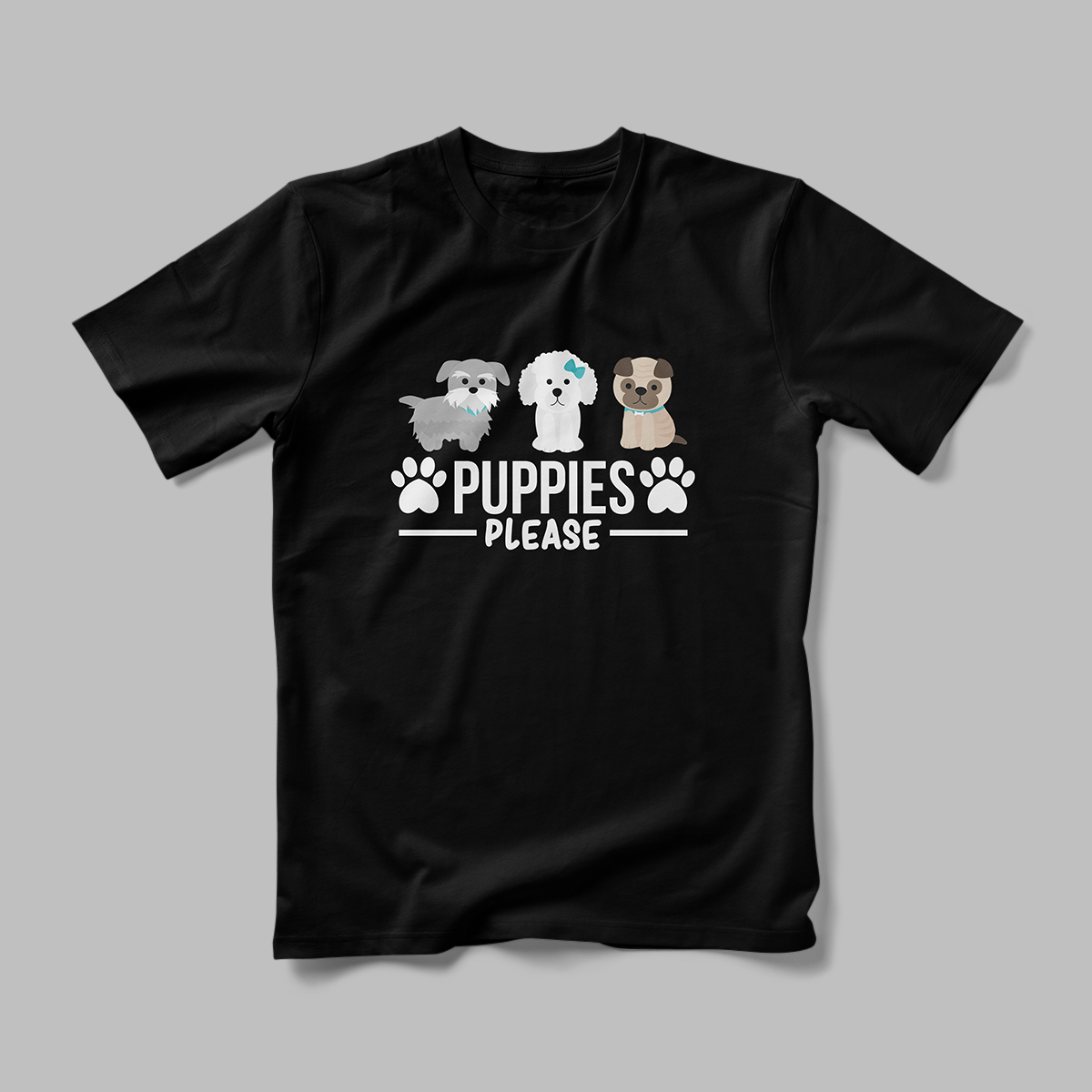 Vrei să faci un cadou cuiva drag? Sau chiar tu vrei să porți un tricou personalizat cu mesajul: Puppies Please?